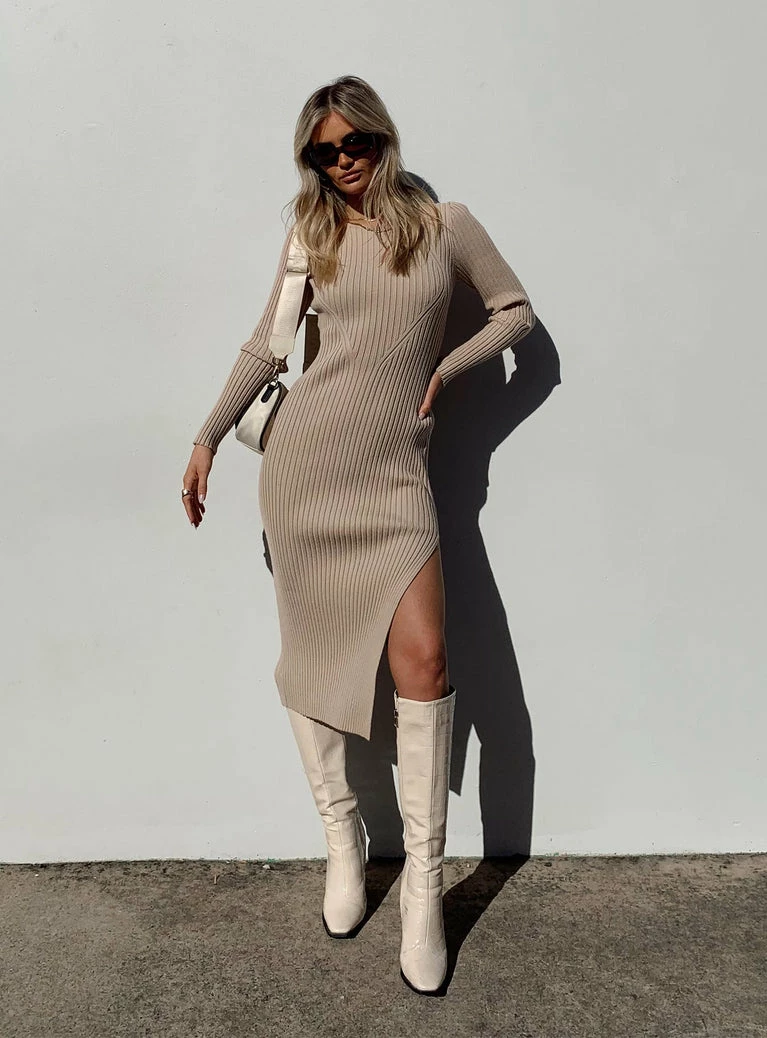 Princess Polly Nicky Midi Dress Beige Beige
